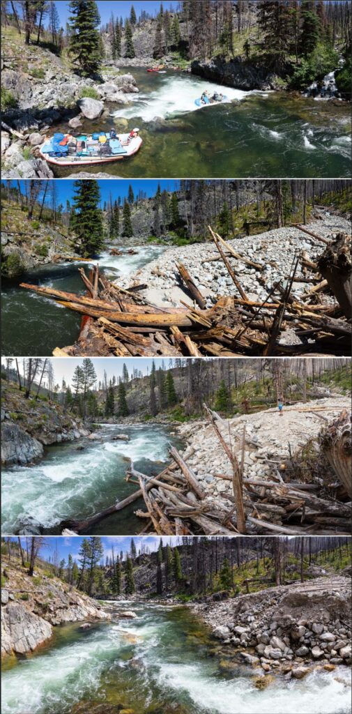 Matt Leidecker, author of The Middle Fork of the Salmon – A Comprehensive Guide, has done a terrific job capturing the changes that have occurred at Sulphur, Ramshorn, Hell’s Half, and Velvet Falls rapids. The photos featured here were taken by Matt Leidecker and Idaho River Journeys and offer a striking view of a landscape in flux.